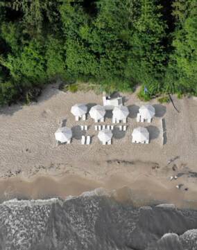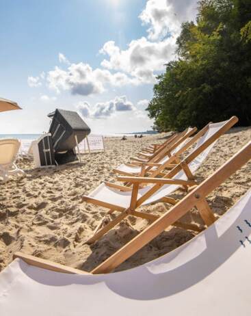 Hosté našeho resortu mohou využívat soukromý přístup na pláž – pohodlné dřevěné schody zasazené do okolní přírody, vedoucí přes malebný útes pokrytý bukovým starým lesem. Hosté s dětskými kočárky mohou také využít druhý, mírnější přístup, který se nachází u vjezdu do resortu.