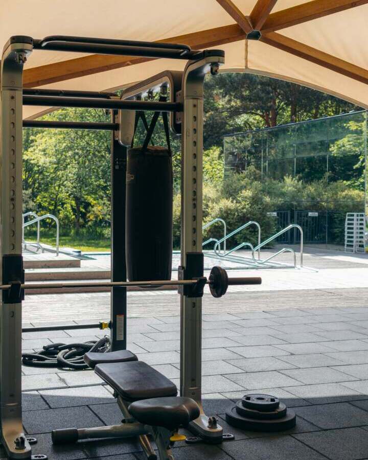 Dla tych, którzy lubią poćwiczyć bez rezygnowania z kontaktu z naturą, stworzyliśmy siłownię plenerową. To tutaj poranny trening zamienia się w rytuał. Z widokiem na las i dźwiękami natury w tle. Jeśli szukasz hotelu z siłownią, ale niekoniecznie w zamkniętej sali – u nas odnajdziesz balans między wysiłkiem a relaksem. Nasz obiekt pozwala odbyć prawdopodobnie najbardziej wyjątkowy trening w życiu. O bezpieczeństwo zadba wyszkolony personel, a w każdym ćwiczeniu wesprze nas najwyższej klasy sprzęt renomowanych producentów.